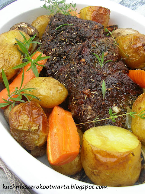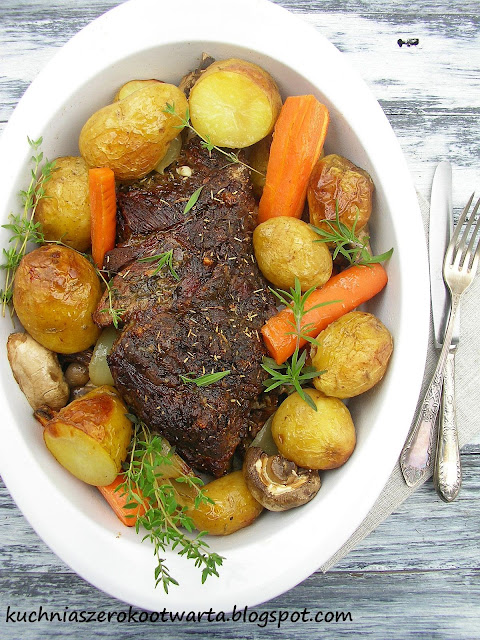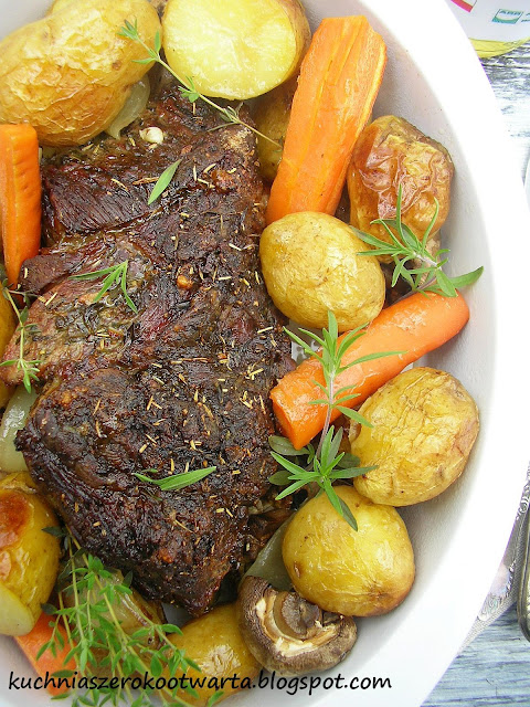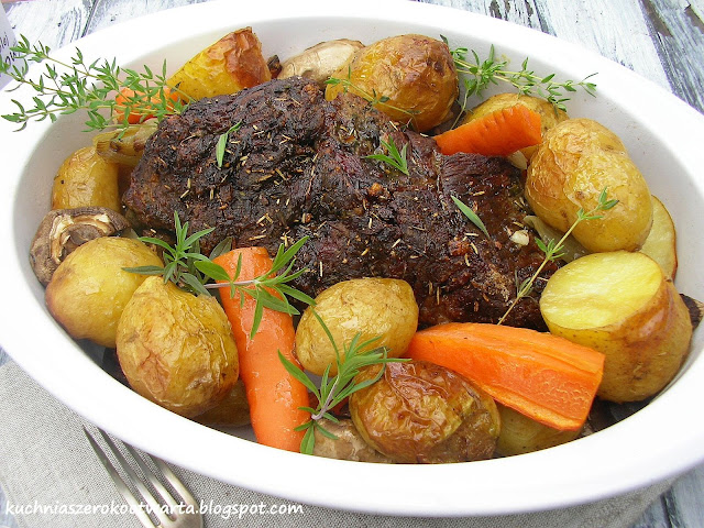 Wołowina to jedno ze smaczniejszych mięs. Dziś podałam ją wprost z piekarnika w aromatycznej marynacie na bazie zdrowego oleju rzepakowego z ziołami i czosnkiem. Do mięsa dodałam warzywa, tworząc tym samym jednogarnkowe, pyszne i proste danie. Jakiś czas temu zostałam zaproszona do wzięcia udziału w akcji „Pokochaj olej rzepakowy”. Z przyjemnością do niej dołączyłam, bo olej rzepakowy jest najczęściej używanym tłuszczem w mojej kuchni. Cenię sobie jego smak i wartości odżywcze. Jak wiecie dodaję go do sałatek, marynat, a nawet ciast. Tym przyjemniej będzie mi wziąć udział w konkursie „Blogerzy kochają olej rzepakowy”, do którego zapraszam także Was 🙂