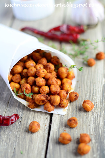 Ciecierzyca, cieciorka, groch włoski… To pyszne, strączkowe warzywo wciąż mnie urzeka 🙂 Z tych wdzięcznych ziarenek można wyczarować pożywną zupę, pyszny pasztet, sałatkę, a nawet przepyszną przekąskę w postaci złocistych, chrupiących kuleczek. Tak przygotowana ciecierzyca idealnie sprawdzi się jako alternatywa dla niezdrowych chipsów czy paluszków, zajadanych często podczas oglądania wciągającego filmu. Smak pieczonej cieciorki możecie dowolnie zmieniać kombinując z przyprawami. Dziś jedna z klasycznych, prostych wersji – z papryką i czosnkiem. Chrupcie na zdrowie 🙂