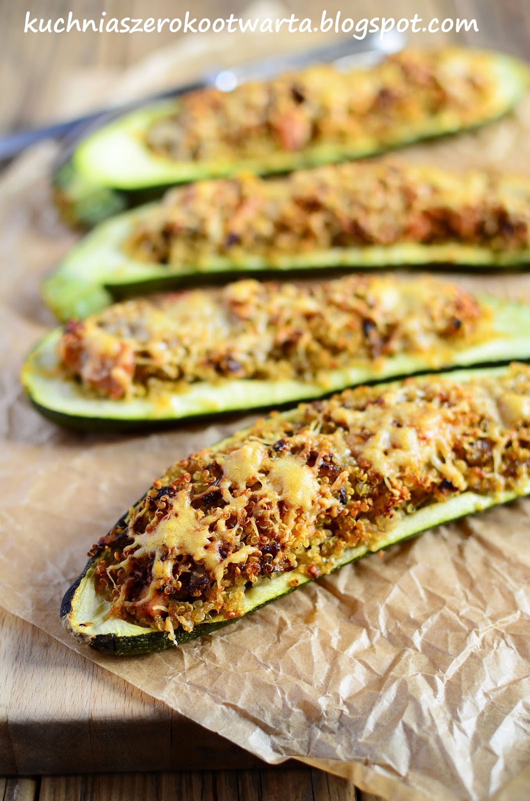 Cukinia to jedno z moich ulubionych warzyw. W kompozycji z wyrazistymi w smaku składnikami smakuje idealnie. Dziś mam dla Was przepis na cukinie faszerowane komosą ryżową, pieczarkami i piersią kurczaka. Obłędnie pyszny i zdrowy posiłek. Idealny na lekki obiad czy kolacje na ciepło.
