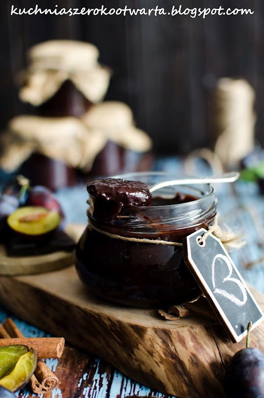 Przepis na czekodżem ze śliwek pojawił się na blogu już 9 lat temu (KLIK) 😉 Dziś przedstawiam Wam nieco zmienioną wersję tego pysznego przetworu – z mniejszą ilością cukru, z dodatkiem cynamonu i czekolady 🙂 Śliwki na działce w tym roku obrodziły, stąd nie mogło zabraknąć w mojej spiżarni czekośliwki 😀 To idealny dodatek do kanapek, tostów, gofrów, deserów, wypieków, naleśników czy ciast 😉 Jeśli jeszcze nie znacie tego przepisu, gorąco polecam spróbować 🙂