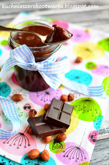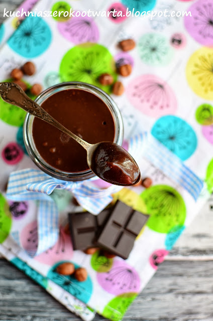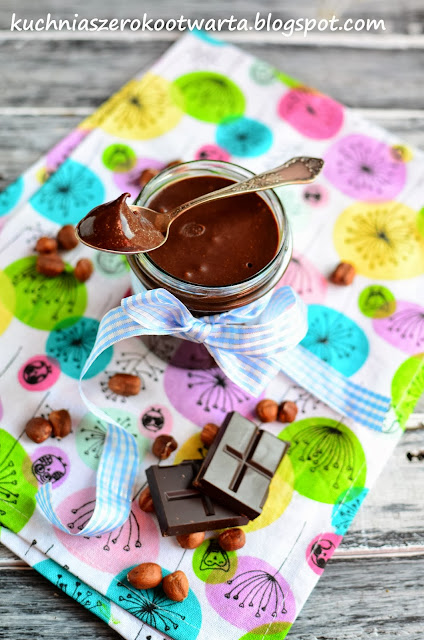 Słodycz zamknięta w słoiku…Kto jej się oprze? Gęsta, czekoladowo-orzechowa nutella, którą w prosty sposób można przygotować samodzielnie w domu. Wystarczy kilka składników i odrobina cierpliwości oraz…silna wola, aby nie zjeść całej, nim zdąży wystygnąć 😉 Czy przypomina tą sklepową? Odrobinką, choć jak dla mnie jest o niebo lepsza 🙂
