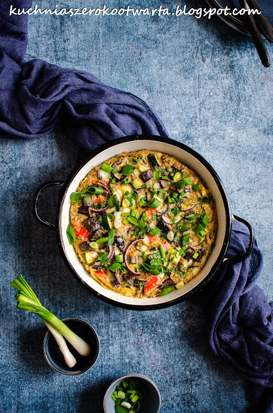 Uwielbiam taki proste dania, do których można dodać to, co mamy pod ręką lub w myśl idei zero waste wykorzystać resztki warzywa, serów czy wędlin zalegające w lodówce. Frittata to pyszny pomysł na obiad, kolację czy śniadanie. Różni się od omletu tym, że składniki zatopione są w masie jajecznej, a całość podawana bez składania – pokrojona na kawałki. Pod względem grubości ponadto frittacie bliżej do tarty czy quiche, niż do omleta. Frittatę, po wstępnym podsmażeniu na patelni należy zapiec w piekarniku, więc do jej przygotowania użyjcie patelni z odpinaną rączką lub takiej, którą można również używać do pieczenia w piekarniku 😉