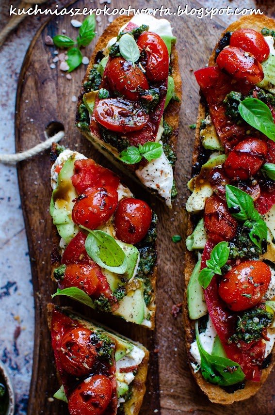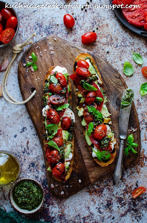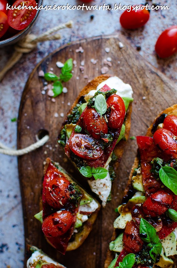 Grzanki z pesto, burratą i pomidorami