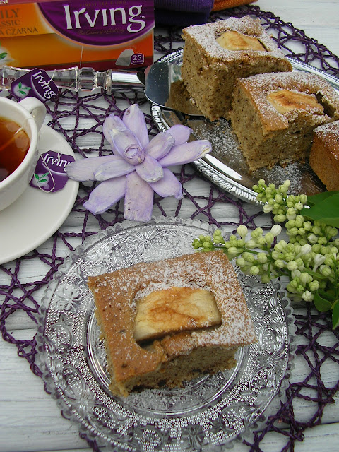 Przepis zrodził się w mojej głowie w ułamku sekundy. Choć może nie zachwyca oryginalnością, to jednak, jako zwolenniczka prostych rozwiązań mogę śmiało powiedzieć, że cały sekret tego wypieku tkwi właśnie w jego prostocie. Ciasto jest mega puszyste, z delikatnie wyczuwalną nutką herbaty, słodkie i jednocześnie przełamane lekką goryczką gorzkiej czekolady. Ten aromatyczny wypiek sprawdzi się zarówno wtedy, gdy chcemy zaskoczyć gości ciekawym smakiem, jak i wtedy, gdy mamy ochotę na coś pysznego do popołudniowej herbaty. Przepis na ciasto herbaciane z siekaną czekoladą i jabłkami bierze udział w konkursie „Z herbatą Irving w roli głównej”. Do ciasta użyłam klasycznej czarnej herbaty Irving Daily Classic. Zachęcam do spróbowania.