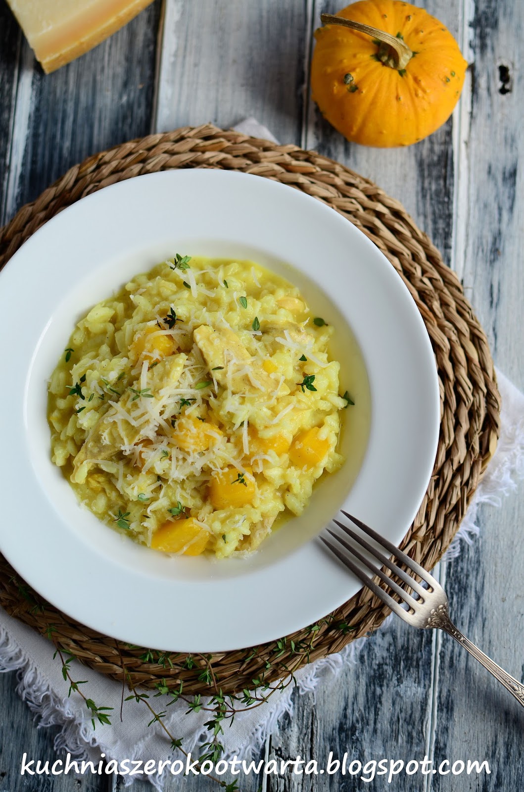 Kremowe, delikatne i rozpływające się w ustach risotto z dynią i kurczakiem to idealna propozycja na jesienny, pożywny obiad. Uwielbiam je za prostotę i nieprzeciętny smak, za kremową konsystencję i niezliczoną ilość wariacji. Polecam!