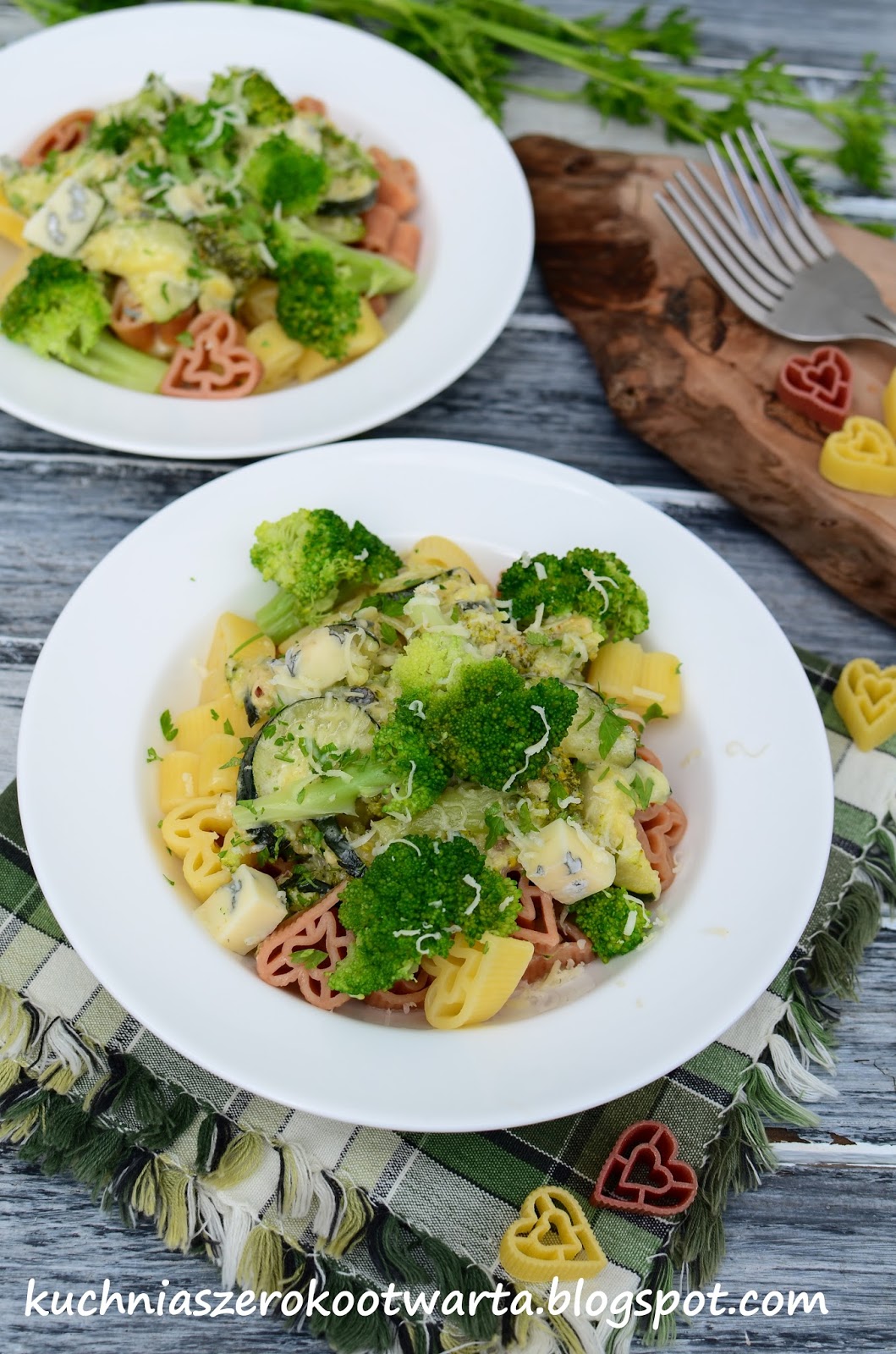 Dziś zapraszam Was na makaronową ucztę. Danie szybkie w przygotowaniu, bezmięsne, ale sycące. Coś dla amatorów serowych smaków w połączeniu z warzywami. To jedno z moich ulubionych dań z makaronem w roli głównej. Zachęcam do spróbowania.