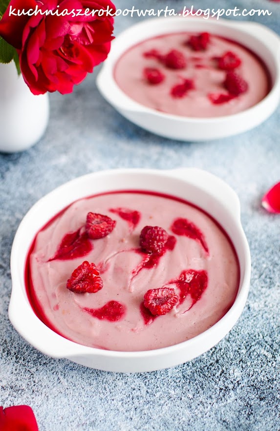Uwielbiam budynie jaglane chyba w każdym wydaniu 🙂 Dziś wersja z malinami 😀 Pyszny, kremowy, bardzo pożywny i mocno owocowy. Idealna opcja na zdrowy deser dla dzieci 😀