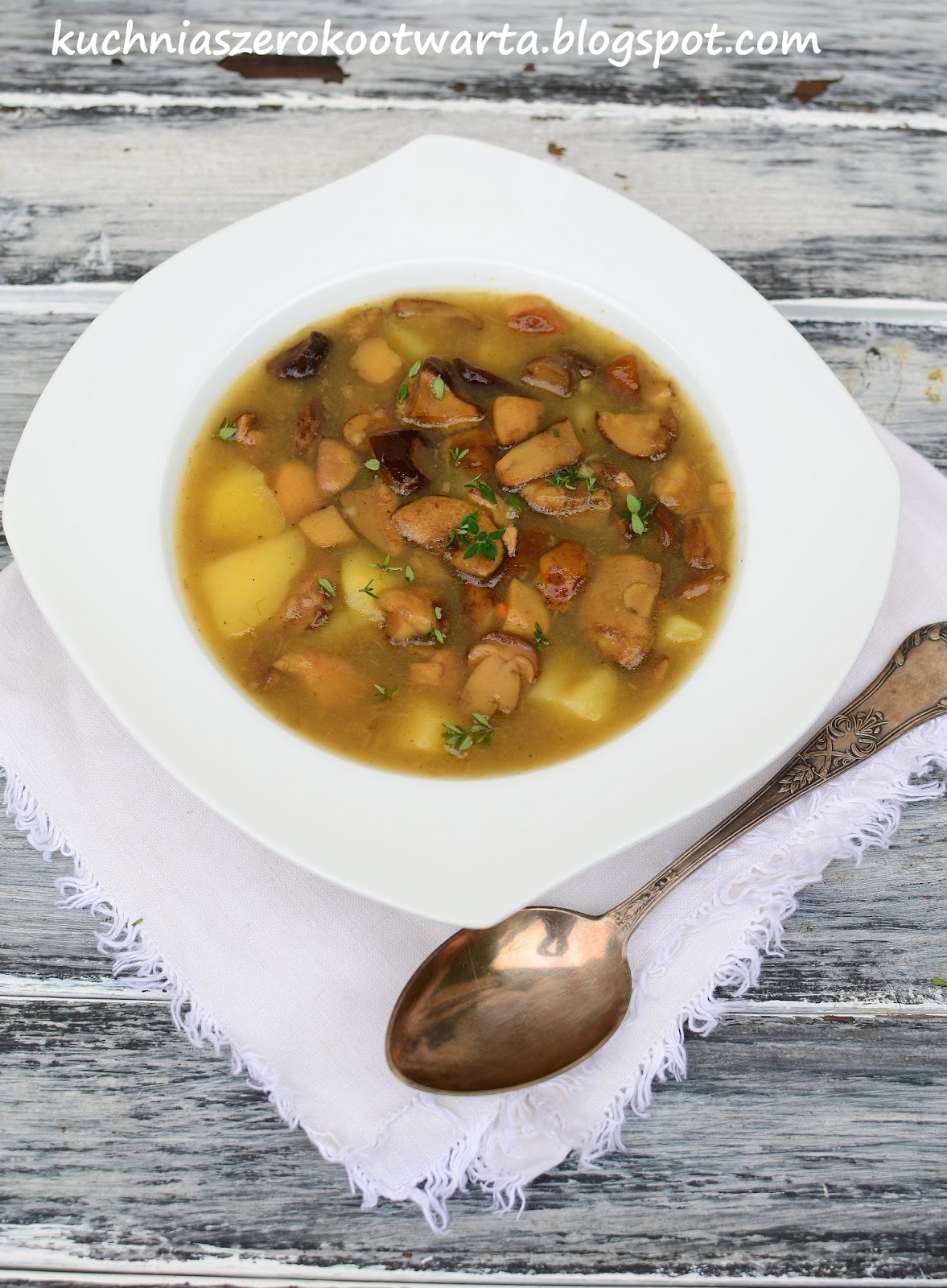 Zupa grzybowa to w moim rodzinnym domu jedna z tradycyjnych wigilijnych potraw. W tym czasie jest jednak tyle dań, że grzybowa niknie wśród innych smakowitości. Co innego wczesną jesienią, kiedy świeżych grzybów jest pod dostatkiem i możemy korzystać z tego dobrodziejstwa natury bez limitu. Wtedy grzybowa smakuje wybornie, a zapach roznoszący się po domu w trakcie jej gotowania jest tym, czym zapach świeżo pieczonego chleba w niedzielny poranek. Uwielbiam zapach grzybów, potrawy z grzybami. I choć sama ich nie zbieram i nie mam tyle cierpliwości w ich oczyszczaniu, każdego roku znajdzie się jakaś dobra duszyczka, która podzieli się ze mną koszem leśnych kapeluszy…I tak też było tym razem 🙂