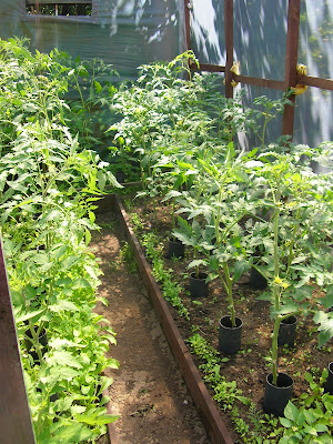 Zapraszam Was na spacer po naszym ogródku. Wszystko powoli pnie się w górę, rozrasta i owocuje. Więc myślę, że już za miesiąc będziemy mogli cieszyć się smakiem i aromatem pomidorów, fasoli czy sałat.