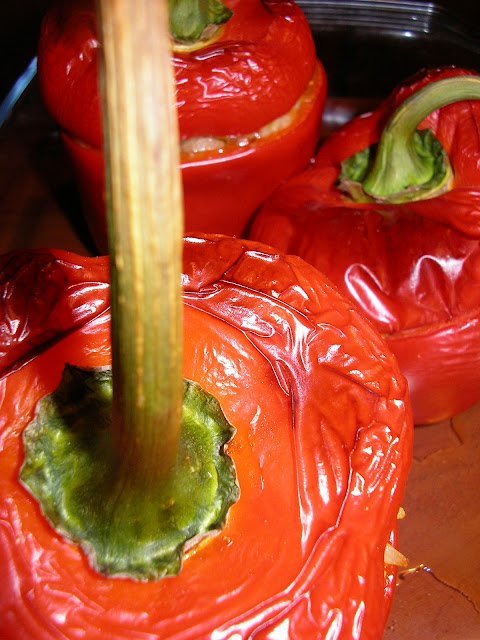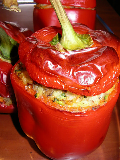 Bardzo lubię nadziewane warzywa zapiekane w piekarniku, a w sezonie letnim grillowane. Są sycące, a zarazem niskokaloryczne. W podobny sposób możecie nadziać cukinię, bakłażana, kapelusze pieczarek lub cebule. Przyprawy do farszu powinny być odpowiednio dobrane. Do tych mniej wyrazistych w smaku warzyw farsz przyprawiamy na ostro, nie szczędząc pieprzu, czosnku czy papryczki chili. Te bardziej wyraziste np. paprykę, nadziewamy farszem, mniej ostrym, chociaż nie mdłym. Bez względu na to jaki rodzaj warzyw wybierzecie, do farszu dodajcie dużą ilość świeżych (w sezonie) lub suszonych (poza sezonem) ziół. Smacznego!
