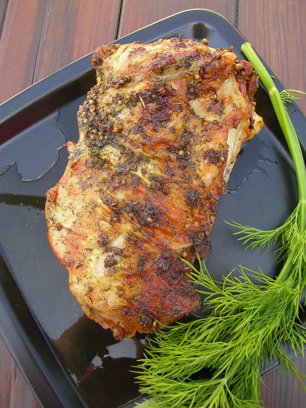 Cielęcina to jedno ze smaczniejszych mięs. Idealnie komponuje się z mieszanką aromatycznych ziół oraz masła, które wyostrza jej delikatność i kruchość. Cielęcina nie jest niestety powszechnym mięsem na polskich stołach. Warto jednak zakupić ładną sztukę mięsa i przyrządzić ją w ten właśnie sposób. Choćby dlatego, aby odmienić codzienny jadłospis i dodać niedzielnemu obiadowi zupełnie nowego smaku. Pieczeń cielęca świetnie komponuje się z młodymi ziemniakami z koperkiem i lekką sałatą z dressingiem.