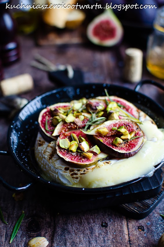 Prawdziwa uczta dla podniebienia. Ten pieczony camembert w połączeniu ze słodkimi figami, chrupiącymi pistacjami i aromatycznym rozmarynem tworzy przepyszną kompozycję smaków, która zachwyci nie tylko miłośników serów. Taką przekąskę możecie serwować solo lub podawać np. do wina 😉 Najlepiej smakuje gorący podany na świeżo pieczonej, chrupiącej bagietce 😉 Będzie pysznie 🙂