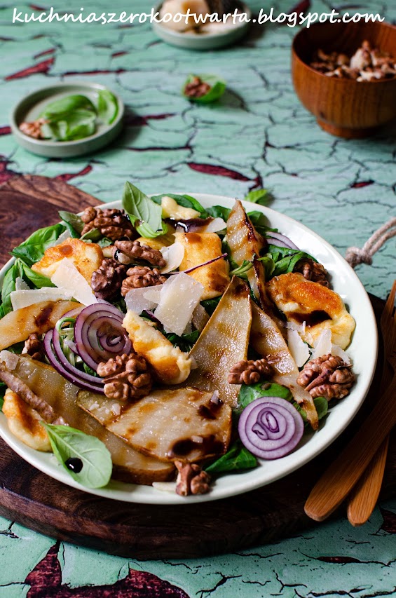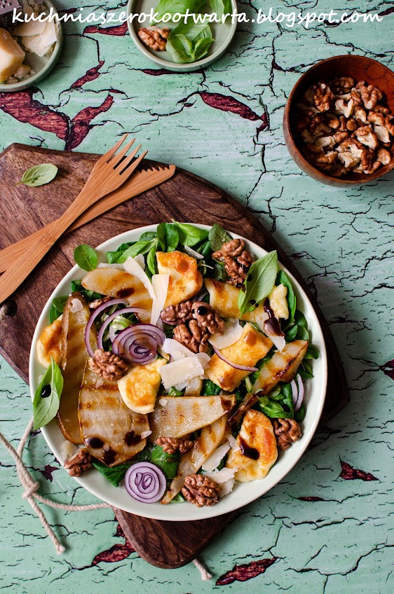 Sałatka z grillowanym oscypkiem, gruszką i orzechami