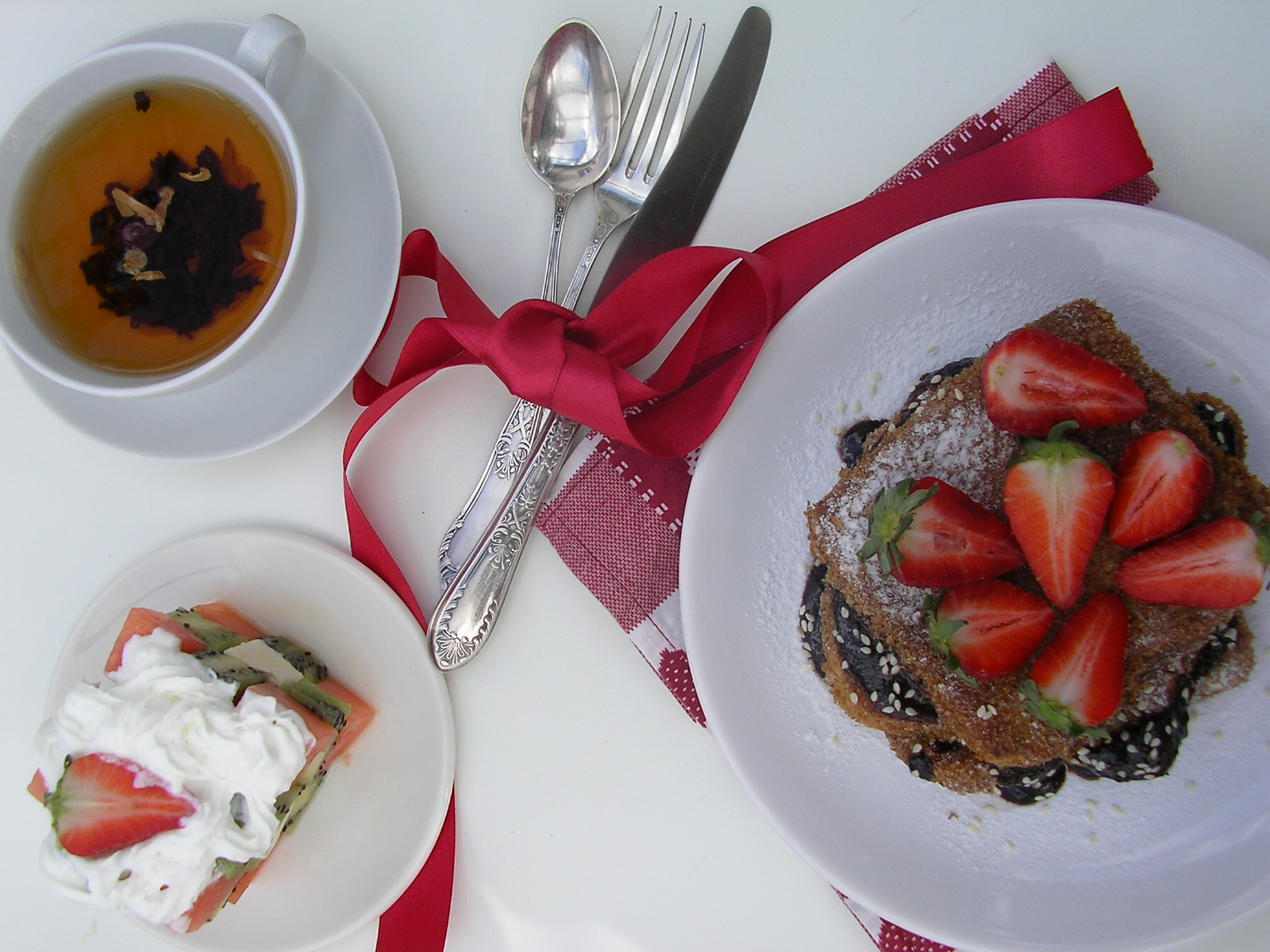Leniwy niedzielny poranek. Co by tu zrobić na śniadanie? Wybór padł na odmienioną wersję francuskich tostów smażonych w otrębach i podpatrzoną na chorwackiej stronie internetowej owocową kostkę Rubika, do której od siebie dodałam bitą śmietanę i truskawkę. Śniadanie obłędnie smaczne…Mąż zachwycony. Czego chcieć więcej?