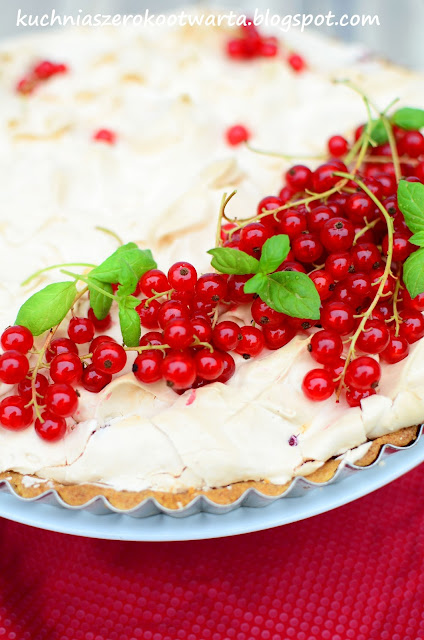 Jedno z lepszych połączeń jakie znam – kwaśne owoce i słodka, chrupiąca beza. A to wszystko schowane w kruchym cieście z kremowym budyniem. Bajka! Owoce lata dają nieograniczone możliwości w kuchni. Świetnie sprawdzają się w wypiekach, daniach obiadowych czy śniadaniach. Porzeczki, każdego lata (nie wiedzieć czemu) przegrywają z tak lubianymi przez wszystkich truskawkami czy malinami. Zapewniam Was, że jeśli do tej pory sięgaliście po te owoce sporadycznie lub wcale, po zrobieniu tej tarty zakochacie się w nich bez pamięci 😉