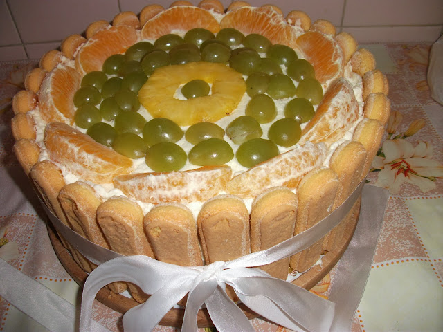 Letni tort z bitą śmietaną i owocami. Do tortu Kasia wybrała różowe wino Celebro France