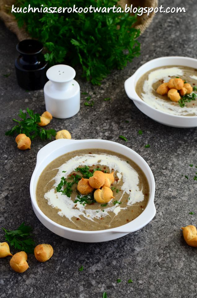 Zupy kremy to jedna z pysznych i szybkich w przygotowaniu propozycji na obiad, lunch, kolację czy po prostu ciepły, pożywny posiłek w ciągu dnia. Kremowa, bardzo aromatyczna pikantna i zarazem lekko słodka zupa z pieczarek świetnie sprawdzi się także na uroczystych rodzinnych obiadach czy większych uroczystościach. Można podać ją z groszkiem ptysiowym lub z prażonymi ziarnami np. słonecznika. Polecam nie tylko na chłodniejsze, wrześniowe dni 😉
